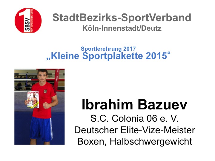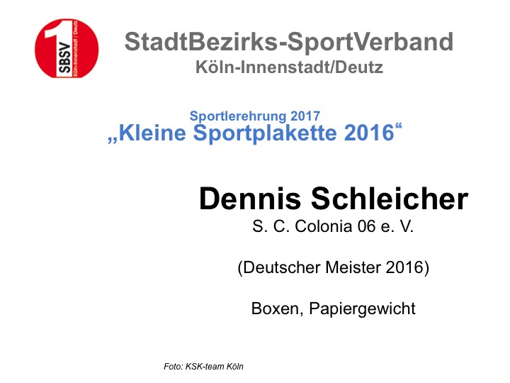 Im Anschluss folgten die Ehrungen (geehrte Sportler rechts in der Fotogalerie öffnen), ein umfangreiches und schmackhaftes Buffet, sowie zum Ausklang einige, anregende Gespräche über die Situation des Sports in der Kölner Innenstadt. Ein durchweg gelungener Abend!